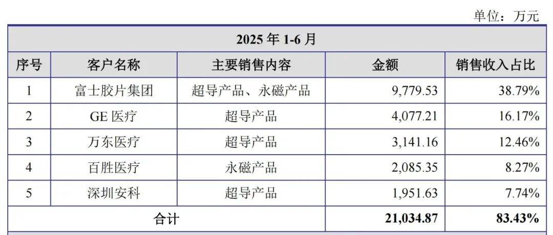 的兴起背后,是持续的手艺攻坚取财产结构。历经多年手艺攻坚,公司正在焦点手艺上实现了从跟跑到领跑的逾越无液氦超导磁体,正在焦点参数、机能目标取产物成本等方面均处于国际领先程度,打破液氦依赖的行业痛点,相关产物已实现全球规模化贸易使用。如公司董事长许建益正在演中所言,“坐正在新的成长起点,公司将践行全球化计谋,通过手艺迭代强化自从立异,进一步控制并冲破MRI行业焦点部件手艺,引领MRI行业手艺成长。同时,联袂客户拓展超导焦点手艺使用鸿沟,勤奋成长为全球磁共振焦点部件行业的带领品牌。”从乡镇企业到科创板上市企业,健信超导的折射出中国高端制制的突围径。这家从慈溪小县走出的企业,正以“硬核科技”沉塑全球超导磁体财产款式。当大大都人想起富士时,脑海中浮现的大概是其常常卖断货的复古彩色菲林和拍立得相纸。不为人知的是,这家以消费影像闻名的日本巨头,正在高端医疗设备范畴同样深耕多年。而其全球财产链中的环节一环,恰是今日所配角——健信超导。健信超导的上市之,刻着深深的“富士”印记。正在2022年至2024年的演讲期内,富士集团一直是其无可争议的第一大客户,贡献的营收占比别离高达34。20%、44。20%和42。71%,即便正在2025年上半年,这一比例仍维持正在38。79%的高位。